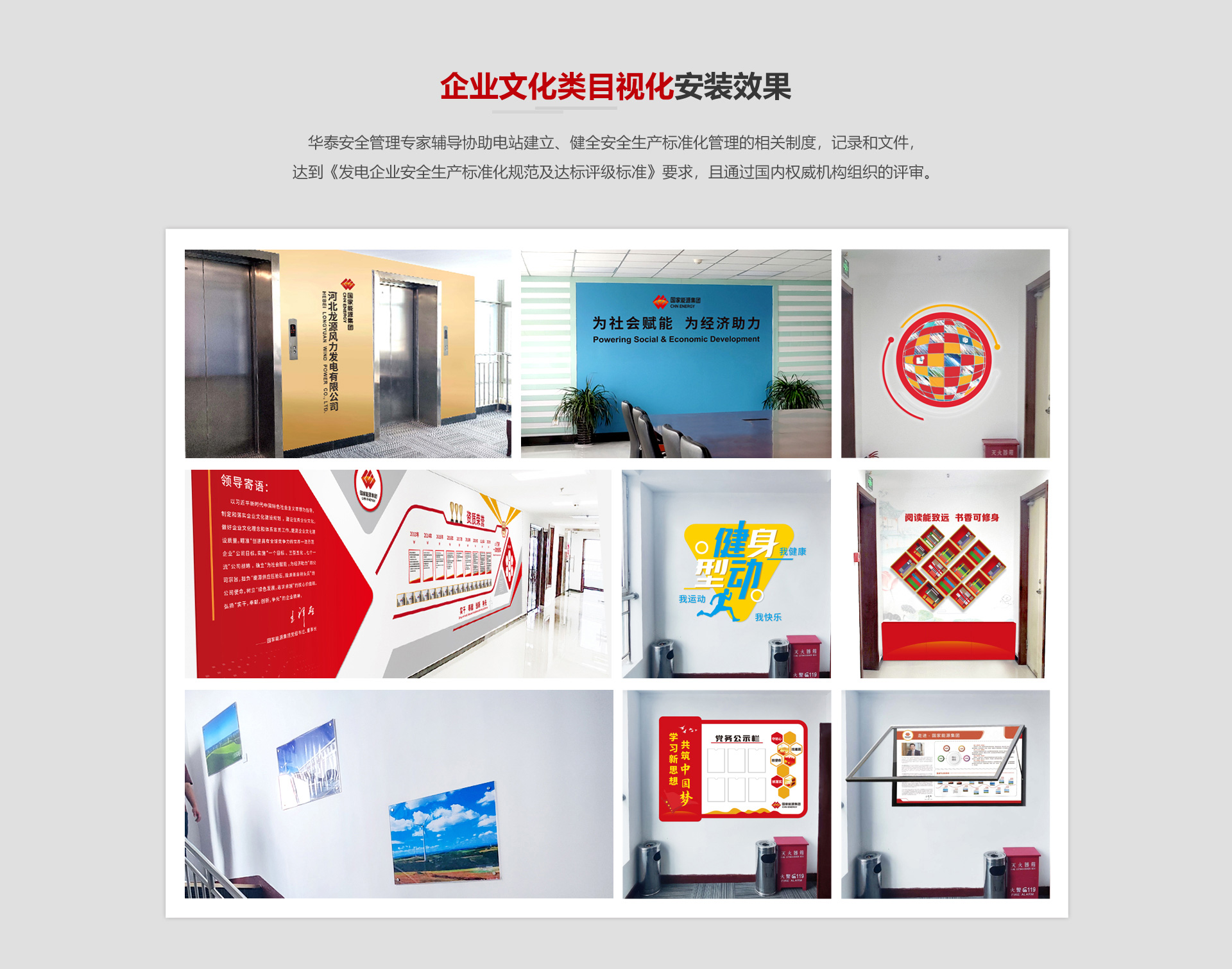 我公司安全標(biāo)準(zhǔn)化業(yè)務(wù)已經(jīng)與國(guó)家能源集團(tuán)、中廣核新能源、三峽新能源等近500家場(chǎng)站建立合作,并與十余家安全生產(chǎn)標(biāo)準(zhǔn)化咨詢機(jī)構(gòu)提供標(biāo)準(zhǔn)化物資硬件支撐。
