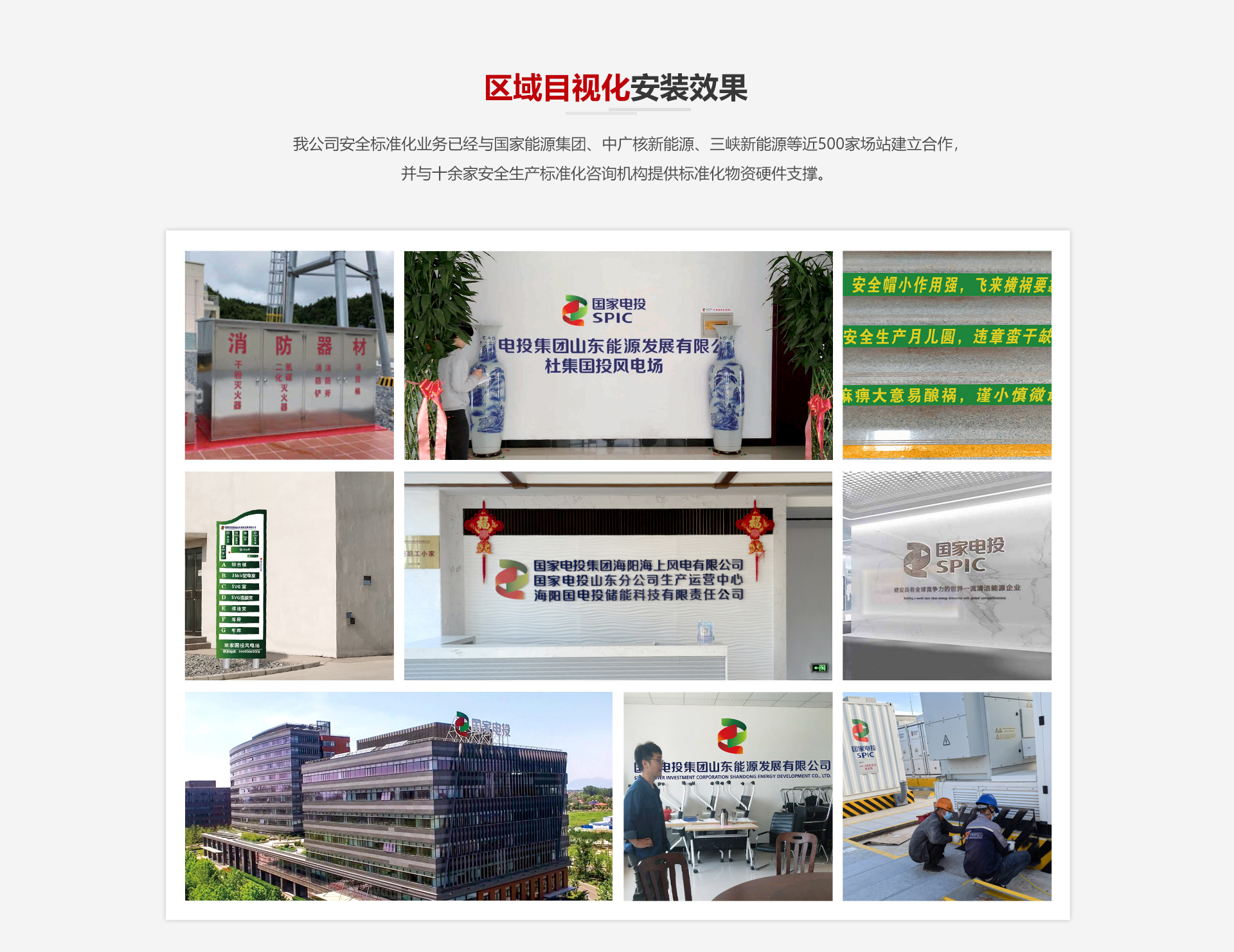 我公司安全標準化業(yè)務已經與國家能源集團、中廣核新能源、三峽新能源等近500家場站建立合作,并與十余家安全生產標準化咨詢機構提供標準化物資硬件支撐。