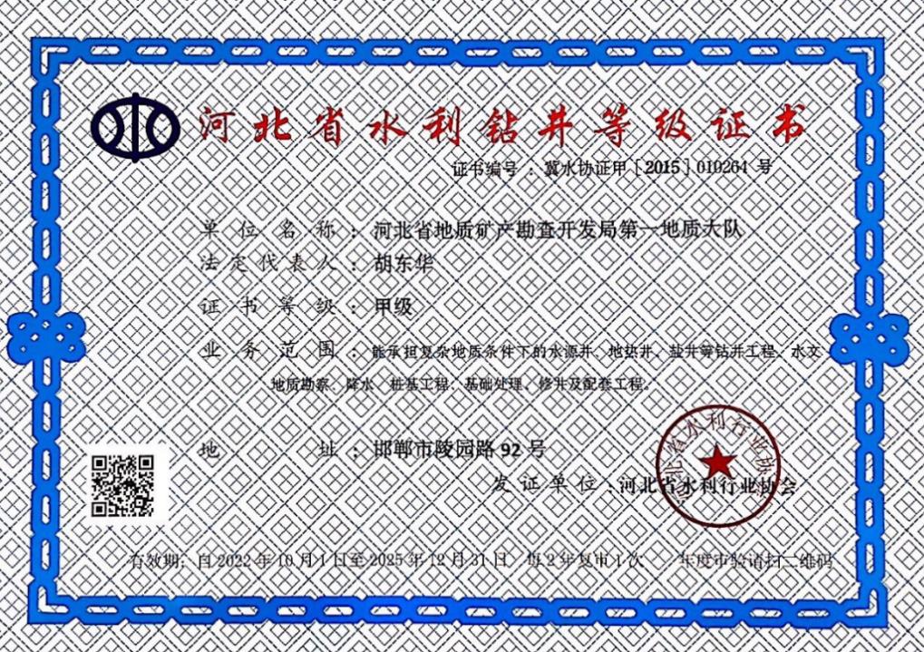 該資質業務范圍包括復雜地質條件下的水源井、地熱井、鹽井等鉆井工程、水文地質勘察、降水、樁基工程、基礎處理、修井及配套工程。資質的取得是我隊綜合實力的體現,為我隊今后承攬此類業務提供了有力保障。