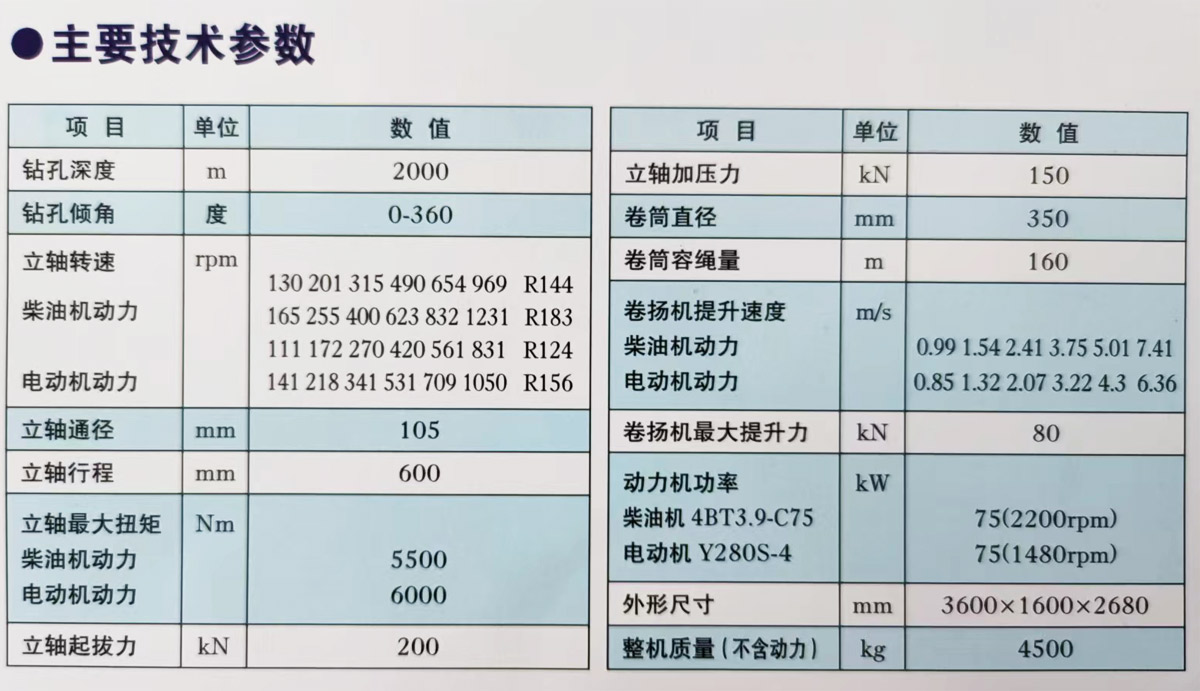 CD2000型巖心鉆機(jī)除繼承了原立軸鉆機(jī)結(jié)構(gòu)簡單、操作容易、維修方便等優(yōu)點(diǎn)外,在提高立軸式鉆機(jī)鉆探工作效率、多用性能、工作可靠性等方面都有所創(chuàng)新。該鉆機(jī)最大鉆進(jìn)深度為2000米,主要用于鉆探地質(zhì)勘探孔、煤田勘探孔、石油勘探孔、水文水井鉆孔、煤層氣開發(fā)鉆孔、基樁鉆孔等。